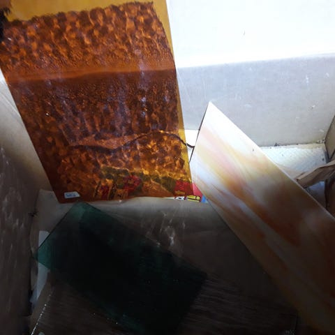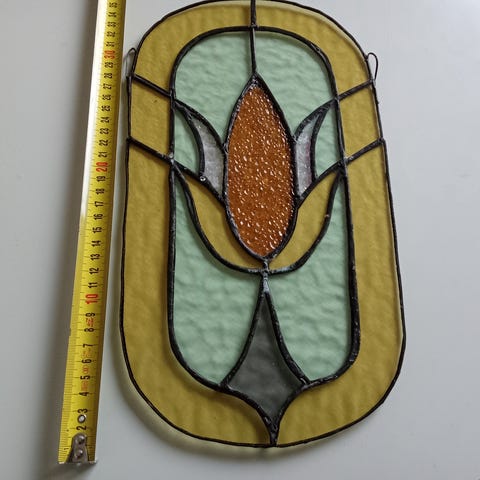 Kuvan mukaiset tiffany lasit. Isoimmat n. A4 kokoisia. Sinisen ja vihreän sävyjä, sävyt oikeasti hieman kuvia kirkkaampia.