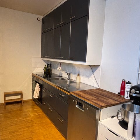 Annetaan Iskun keittiö, mukaan saa lieden ja astianpesukoneen.