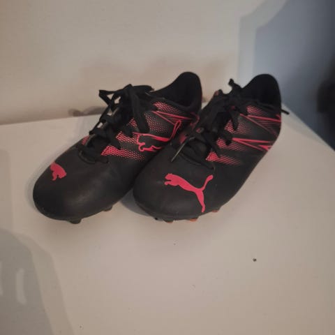 Adidaksen nappulakengät koossa 32. Sisäpuolelta kankaassa paikoin näkyy pientä kulumaa, ulkopinta ehjä. Toisen kengän kärki hieman repsottaa.