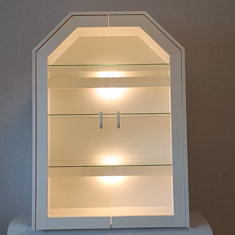 Hyllykkö ylä osassa lasiovi kaappi
