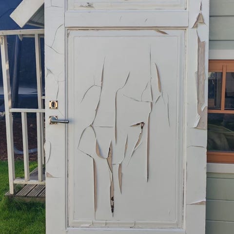 Kuvien vanha tuvan komea ovi. Isot saranat, kahvat. Kooltaan 175*84*5 cm.