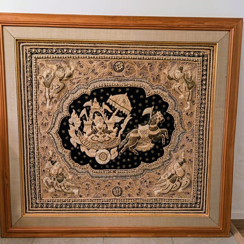 Taulu, näyttävästi kehystetty canvastaulu. Taulun koko kork. 76cm ja lev. 41cm. Hyväkuntoinen ja ehjä.
