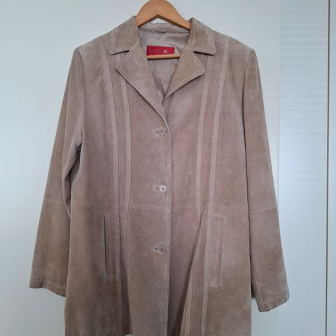 Vuorellinen mokka/nahkatakki lohenpunainen. Kokomerkintä 42, mutta pienenetty kokoon 38-40. Väri ei ihan noin kirkas kun kuvissa ja kirkkaampi kuin viimeinen kuva. Normaalia pientä käytöstä tullutta kulumaa.