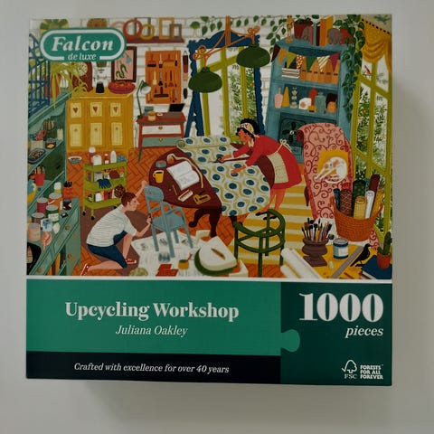 Palat ei ihan priima kunnossa mutta kaikki palaset tallella ja pussitettuna. Myös palapelin kansi saanu vähän osumaa.