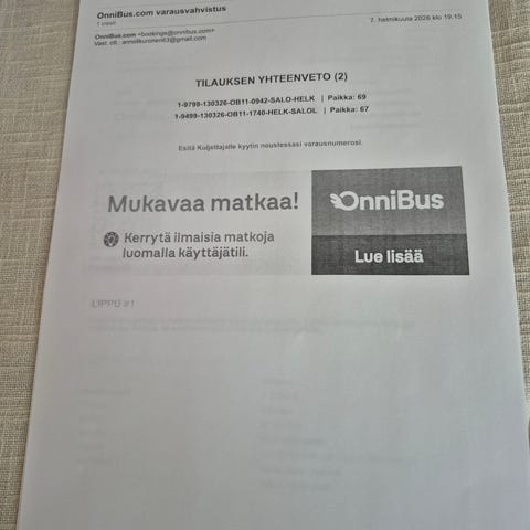 Lippu la 14.3. Klo 9.35 bussiin Hki-Savonlinna