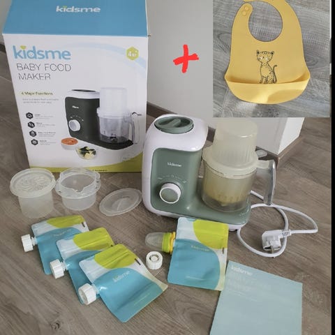 Vauvanruokakone jolla valmistaa nopeasti ja helposti soseet vauvalle. Käytetty, mutta edelleen siisti ja toimiva. Valkoisessa muoviosassa hieman värjymää porkkanasta, mutta ei siis likainen. Kaikki osat tulee mukaan alkuperäisessä pakkauksessa.