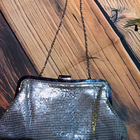 Musta hopeinen kukkaro esimerkiksi juhliin. Ei ollut käytössä. Koko 18,5x9,5cm