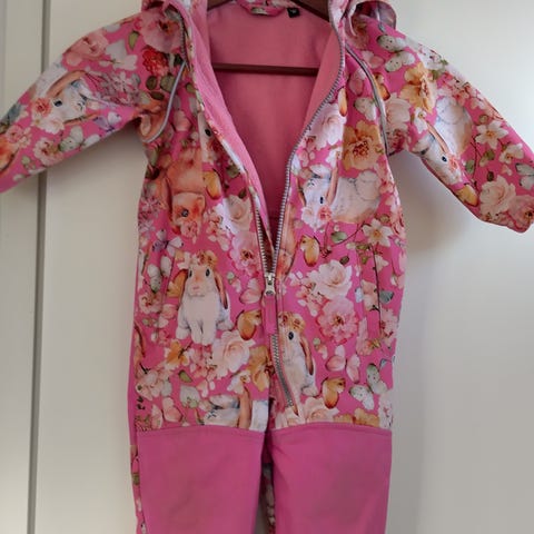 Name it softshell -haalari 80cm, suloinen kuosi. Hyvässä siistissä kunnossa, jotain pientä käytön jälkeä ainakin peppu/polvet, ks. kuvat.