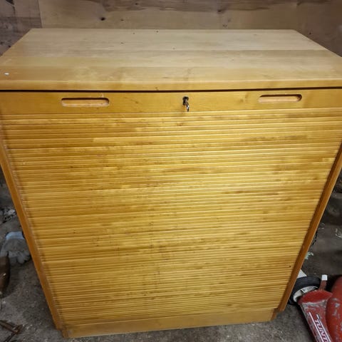 Kuvan mukainen rulokaappi. Edellinen omistaja sanoi iskun kaapiksi.