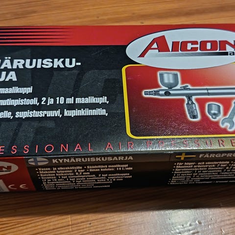 Käyttämätön kynäruisku yläpuolisella säiliöllä, mukana puhdistussäiliö, kompressori ja verkkolaite. Ei ole koskaan käytetty, on siis ihan uusi. Löytyy Vallilasta, Helsinki, mieluiten nouto. Voidaan myös lähettää jolloin lähetyskulut lisätään hintaan.