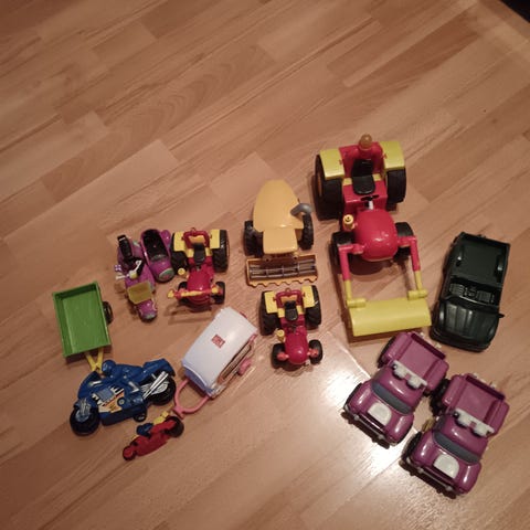 Myydään oikein hyväkuntoinen Viking Toys kauhatraktori peräkärryn, kuskin ja eläinten kanssa.