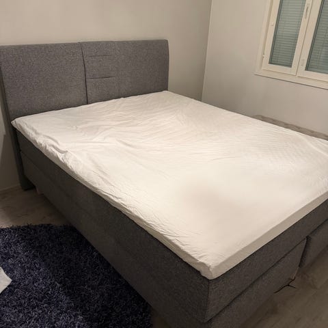 Myydään hyväkuntoinen Askon Bonnell harmaa parisänky. Kunto siisti, kankaat tahrattomat ja ehjät. Petari (160x200, pesty juuri) ja sängyn pääty mukaan. Patja yhtenäinen (160x200), mutta kankaan alla kaksi erillistä patjaa eli helppo kuljettaa.