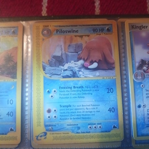 Pokémon Piloswine keräilykortti holografisella pinnalla. Kortti kuuluu Pokémon-korttipeliin ja esittää Piloswine-hahmoa. Soveltuu keräilyyn tai pelikäyttöön Pokémon TCG -pakkauksissa.
