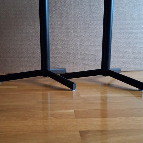 Telineissä on pehmustettu yläosa, joka estää kaiuttimia liukumasta ja vähentää resonanssia. Metallirakenne tekee telineistä vakaat.