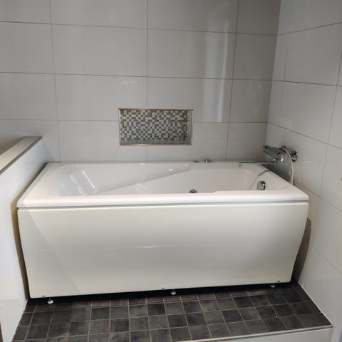 Vauvankylpyamme telineellä ja kylpytuella. Amme on läpinäkyvää muovia, jossa on värilliset tukiosat ja pohjassa tulppa veden tyhjentämistä varten. Menee kasaan, jotta säilytyksessä ei veisi niin paljoa tilaa. Metallinen teline nostaa ammeen sopivalle pesukorkeudelle.