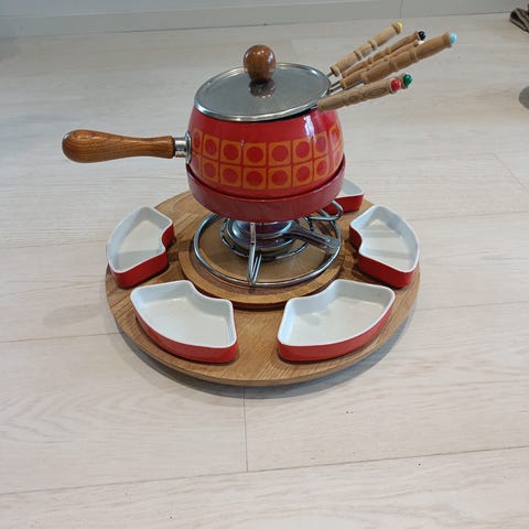 Retro kattila fonduepata keittiö mökki koti ruoanlaitto ruokailu herkuttelu vintage