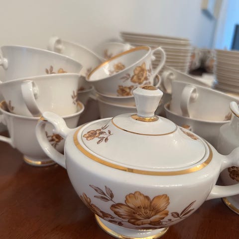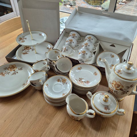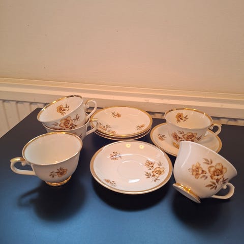 Hakusanat: astiat, kaadin, lautaset, arabian, design kuppi muki kupit lautanen astiasto kahviastiasto tassi asetti lautaset kupit mukit, lautanen, kultareunus, arabia, klassinen, kahvi, Valmistaja, kupit, myrna, kuppi, keittiötarvikkeet, muki, kukkakuvio, aterin, suomalainen muotoilu, tarjoilulautanen, keramiikka, aterimet, astiasto