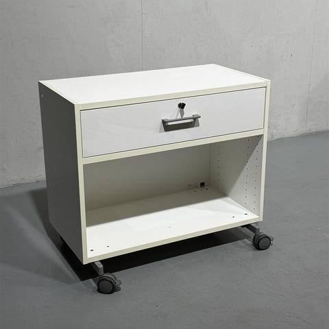 Laadukas valkoinen Martelan laatikosto, jossa on yksi vetolaatikko, sisällä jakajia ja avohylly. Laatikosto on varustettu tukevilla pyörillä, mikä helpottaa sen siirtämistä. Valmistaja on Martela, sisältää 2 kpl.