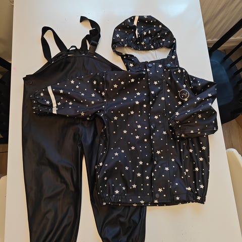 Siistikuntoinen muuten paitsi värit hieman haalistunut. Haaroissa venyttämällä kangas venyy irti toisistaan, vaatelaastarilla varmaan voisi paikata jos haluaa. Meillä mennyt ilman sitäkin.