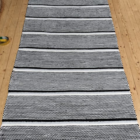 Erittäin hyvin kudottu, napakka räsymatto. Vaalea, kevään värit, vihreä. Vaalea loimilanka. Leveys 83, pituus 166. Postitus onnistuu.