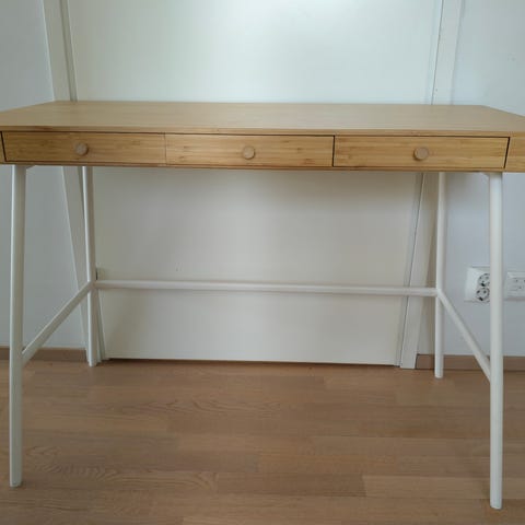 Myydään Ikea Lillåsen työpöytä. Kunto erittäin hyvä, mutta keskimmäisestä laatikosta puuttuu vetonuppi. Kaksi vikaa kuvaa Ikean sivuilta havainnollistamaan. Vain nouto.
