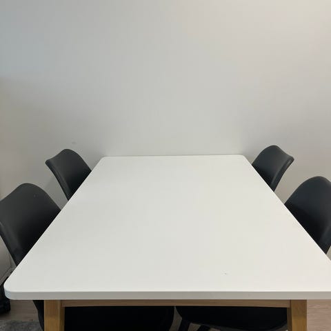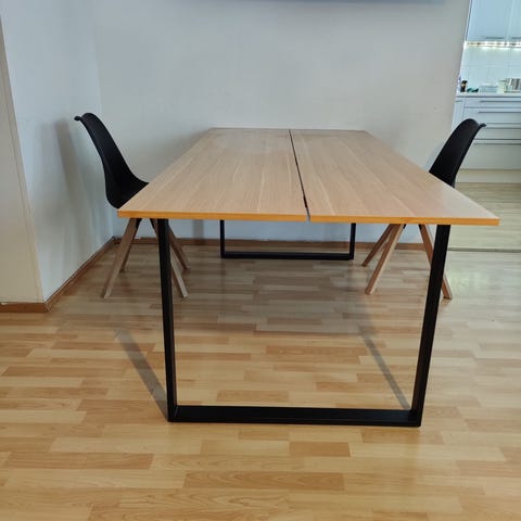 Pöydässä yksi kolhu, joka ei haittaa käyttöä.