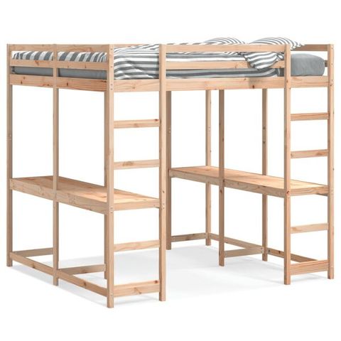 vidaXL Parvisänky työpöytä ja tikkaat valkoinen 160x200 cm täysi mäntysku3284234