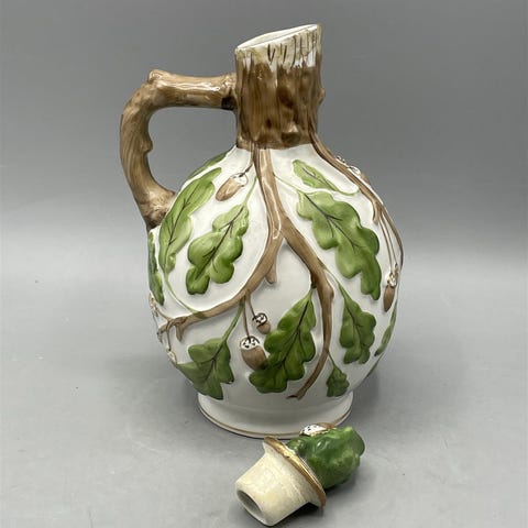 Lomonosov pieni kannu, jossa on värikäs hedelmäkoriste.