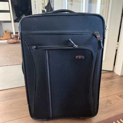 Kerran laivareissulla mukana ollut näppärän kokoinen laukku. Oli omaan käyttöön liian pieni. Laadukas musta merkkilaukku. Todella kestävä, renkaat pyörii kuin unelma, helppo kuljettaa vierellä, tai vetää perässä. Korkeus pyörineen 50cm, leveys 35cm, syvyys 27cm. Vetoaisan kanssa maksimikorkeus n.103cm.