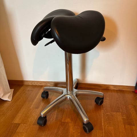 Myydään tarpeettomana täysin toimiva satulatuoli korkeussäädöllä