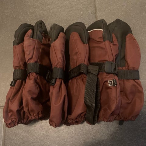 Lasten unisex-sormikkaat, koko vaihtelee. Pienimmät yhdet sormikkaat on kokoa 3-5v, muut 5-7v. Ottaisin itse käyttöön n. 5-vuotiaalle alkaen. Lisäksi settiin tulee vielä yhdet mustat ohuet neulesormikaat n. Kokoa 5v. Kaikki sormikkaat on siistejä ja vähän käytetty.