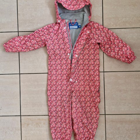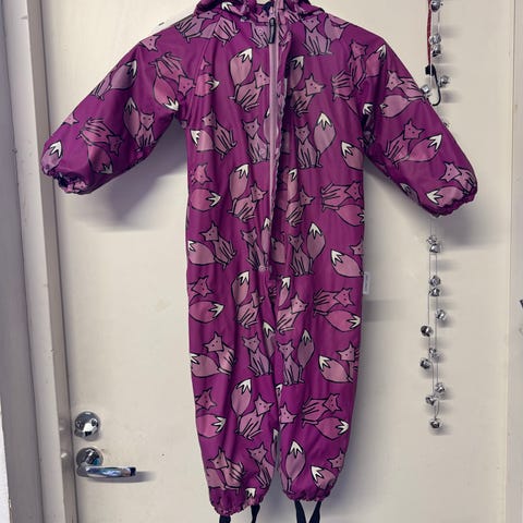 Ihana tyttöjen vuorellinen kurahaalari kokoa 98. Haalari on ollu käytössä yhden syksyn, ja on erittäin hyvässä kunnossa. Hupussa kätevä lippa suojaamaan kasvoja sateelta.