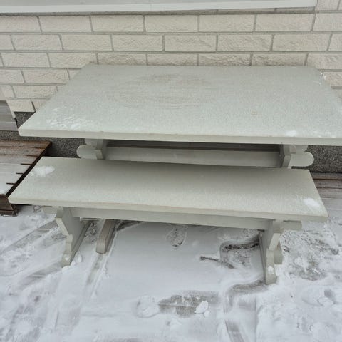 Annetaan muuton tieltä pyöreä puinen ruokapöytä, halkaisija 100cm, jatkopalalla 40cm lisää. Vaatii (hionnan ja) maalauksen! Muutoin ehjä ja tukeva. Nouto Heikkilästä. Jalat irrotettavat, mahtuu hlöautoon.