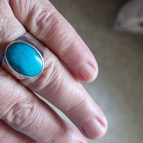 Hopea sormus, koko 18mm, turkoosi kivi,leimaa on