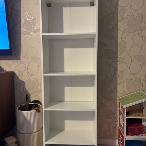 Hyllyyn tehty muutamaan kohtaan reiät piuhoille. Kuljetuksesta tullut parit säröt, niistä kuvat. Löytyy lisähyllyjä, joilla osat saa eriteltyä kapeammaksi pystysuunnassa.