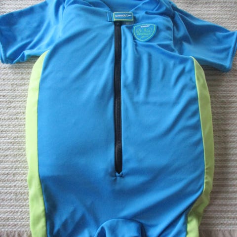 11-18kg. Olkapäästä haaroväliin 44cm, kainalosta kainaloon 28cm, vyötärö 26cm. Materiaali joustavaa