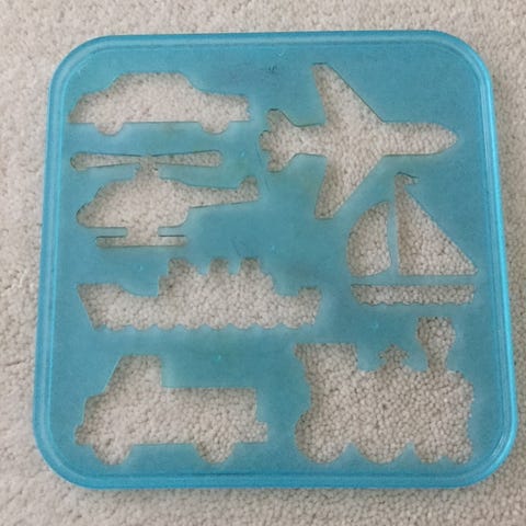 Tupperware piirustuslevy, kirjaimia ja numeroita. Levy on hieman kovera.