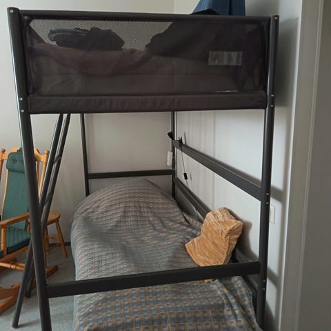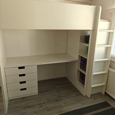 Parvisänkyyn mukaan pöytätaso, hylly.