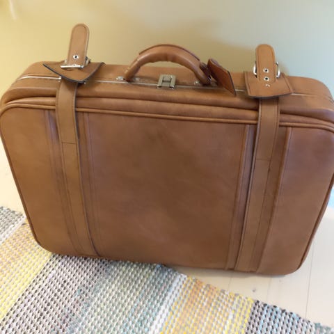 Myydään vanha nahkainen, konjakinruskea matkalaukku. Pyörät toisessa alanurkassa, vedettävä. Sisältä erinomaisessa kunnossa. Ulkopuolella nahkassa nurkissa kulumaa. Lukiosta avaimet hävinneet. Mitat k. 46 cm, l. 65 cm ja s. 21 cm.