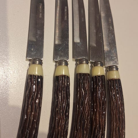 Tukissa vähän maalissa kulumia, mutta vielä ihan edustuskelpoinen. Veitset kuin uudet!