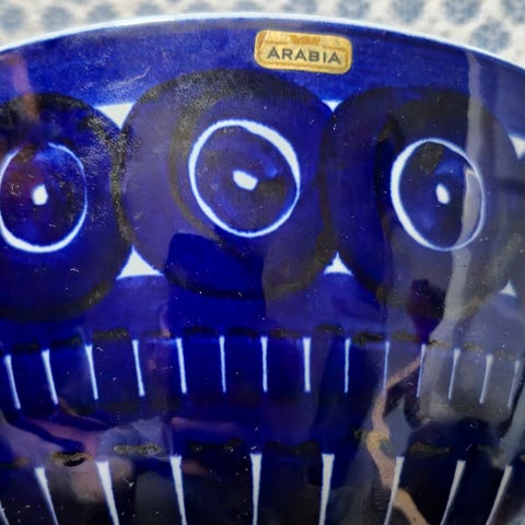 Ulla Procopeen suunnittelama täysin uuden veroinen kaunis tarjoilukulho,joka ollut käytössä vain muutamia kertoja. Korkeus 11 cm ja halkaisija 22 cm. 2,5 l tilavuus.