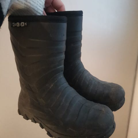Vuorelliset kumisaappaat , käytön jälkiä , ehjät.