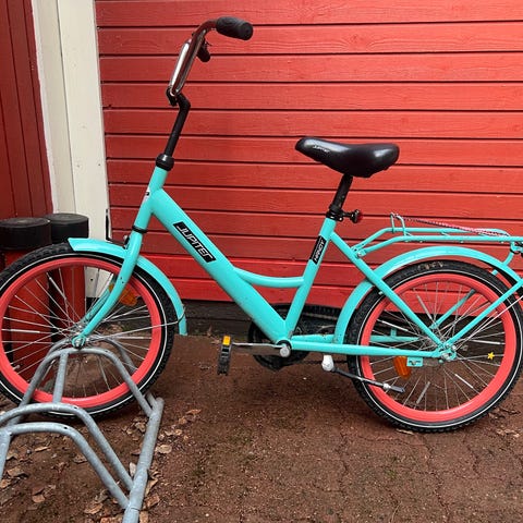 Etukumi on puhki. Käytönjälkiä muutenki reilusti, mutta kumia lukuunottamatta ehjä ja toimiva pyörä.