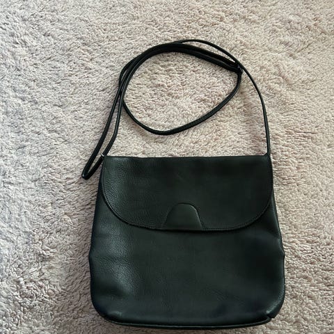 Aitoa nahkaa oleva käsilaukku. Musta. Kuin uusi. Olen käyttänyt sitä pari kertaa. Hinta: 35 euroa.Ketju on irrotettava ja kahvan pituus säädettävissä.