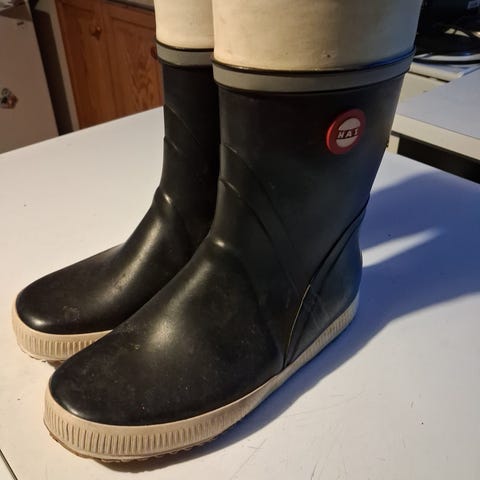 Kumisaappaat ja toppaliivi