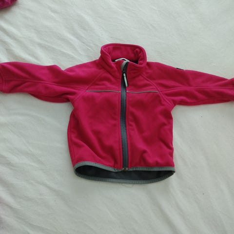 Polarn O. Pyret fleece-takki lapsille, koko 86 (noin 1–1,5 vuotta). Takki on punainen ja unisex-mallinen. Materiaali on fleeceä, sisäpuolella on verkkovuori. Edessä on vetoketju ja takana heijastinyksityiskohta. Soveltuu välikerrokseksi tai kevyeksi takiksi viileämpiin päiviin. Pieni reikä kauluksessa.