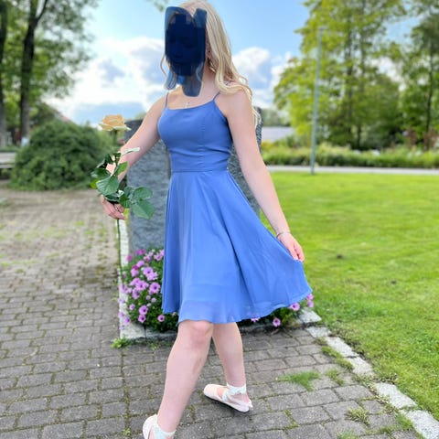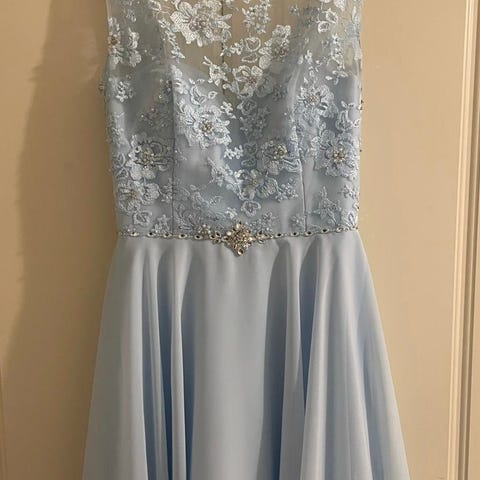 Kaunis kimaltavan vaaleansininen rippimekko. Koko 36.