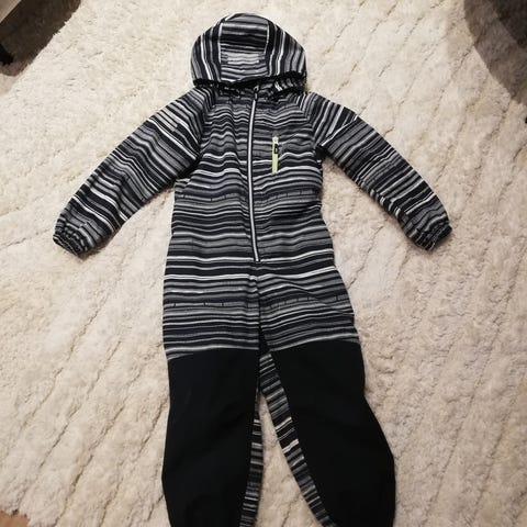 Lassietec puolikurahaalari, ilman vuorta. Koko 110cm, reilu mitoitus. Siisti ja ehjä haalari. Vetoketju toimii hyvin. Kaikki napit tallessa ja hyvin kiinni, jalkalenksut ehjät. Pesty käytön jälkeen.