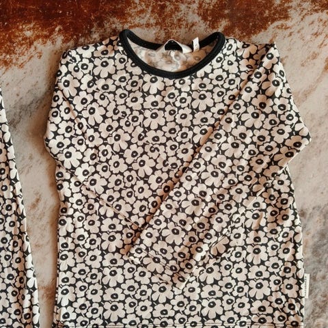 Myydään Marimekon 'Lairi Pikkuinen Unikko' -housut / legginssit. Joutavaa puuvillaa. Hyväkuntoiset, ei tahroja tms. Myynnissä myös samaa kuosia ja kokoa oleva paita sekä mekko (koko 80/86).