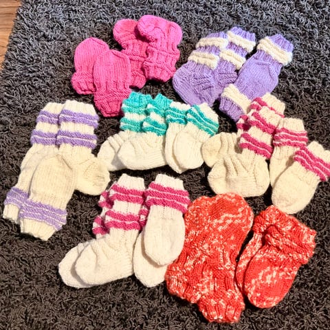Uusi kudottu setti Novitan Nallea. Pohja 10,5cm eli vastasyntyneestä noin 6 kk ikään.